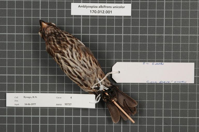 Keywords: Naturalis Biodiversity Center - RMNH.AVES.95737 2 - Amblyospiza albifrons unicolor (Fischer and Reichenow, 1878) - Ploceidae - bird skin specimen.jpeg artwork Dimensions artwork Document type Ploceidae Amblyospiza Individual count 1 Infraspecific epithet unicolor Infraspecific rank Institution Naturalis Kind of unit artwork Kind of unit specimen skin Life stage Kenya Coast Kwale Shimba Hills Medium artwork Nomenclatural code Occurrence ID page Other fields Other versions artwork Permission license Naturalis donation CC-0 Publication location Scientific name Amblyospiza albifrons unicolor Fischer and Reichenow 1878 Scientific name authorship Fischer and Reichenow 1878 male Source url http //bioportal naturalis nl Specific epithet albifrons State or province Coast Kwale Shimba Hills Subject keywords artwork Subject keywords publication Title artwork Title publication Type status Uploaded with GWToolset Naturalis_Biodiversity_Center_-_RMNH AVES 95737_2_-_Amblyospiza_albifrons_unicolor_ Fischer_and_Reichenow _1878 _-_Ploceidae_-_bird_skin_specimen http //medialib naturalis nl/file/id/RMNH AVES 95737_2/format/large Media donated by Naturalis Biodiversity Center Songbird specimens at Naturalis Biodiversity Center Amblyospiza albifrons museum specimens |