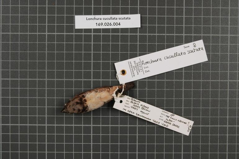 Keywords: Naturalis Biodiversity Center - RMNH.AVES.85908 2 - Lonchura cucullata scutata (Heuglin, 1863) - Estrildidae - bird skin specimen.jpeg artwork Dimensions artwork Document type Estrildidae Lonchura Individual count 1 Infraspecific epithet scutata Infraspecific rank Institution Naturalis Kind of unit artwork Kind of unit specimen skin Life stage immature South Africa North Western Natal Drakensberg Foothillls near van Reenen Medium artwork Nomenclatural code Occurrence ID page Other fields Other versions artwork Permission license Naturalis donation CC-0 Publication location Scientific name Lonchura cucullata scutata Heuglin 1863 Scientific name authorship Heuglin 1863 female Source url http //bioportal naturalis nl Specific epithet cucullata State or province North Western Natal Drakensberg Foothillls near van Reenen Subject keywords artwork Subject keywords publication Title artwork Title publication Type status Uploaded with GWToolset Naturalis_Biodiversity_Center_-_RMNH AVES 85908_2_-_Lonchura_cucullata_scutata_ Heuglin _1863 _-_Estrildidae_-_bird_skin_specimen http //medialib naturalis nl/file/id/RMNH AVES 85908_2/format/large Media donated by Naturalis Biodiversity Center Songbird specimens at Naturalis Biodiversity Center Lonchura cucullata museum specimens |