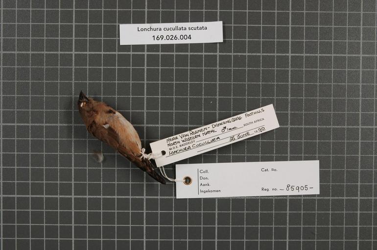 Keywords: Naturalis Biodiversity Center - RMNH.AVES.85905 1 - Lonchura cucullata scutata (Heuglin, 1863) - Estrildidae - bird skin specimen.jpeg artwork Dimensions artwork Document type Estrildidae Lonchura Individual count 1 Infraspecific epithet scutata Infraspecific rank Institution Naturalis Kind of unit artwork Kind of unit specimen skin Life stage immature South Africa North Western Natal Drakensberg Foothillls near van Reenen Medium artwork Nomenclatural code Occurrence ID page Other fields Other versions artwork Permission license Naturalis donation CC-0 Publication location Scientific name Lonchura cucullata scutata Heuglin 1863 Scientific name authorship Heuglin 1863 male Source url http //bioportal naturalis nl Specific epithet cucullata State or province North Western Natal Drakensberg Foothillls near van Reenen Subject keywords artwork Subject keywords publication Title artwork Title publication Type status Uploaded with GWToolset Naturalis_Biodiversity_Center_-_RMNH AVES 85905_1_-_Lonchura_cucullata_scutata_ Heuglin _1863 _-_Estrildidae_-_bird_skin_specimen http //medialib naturalis nl/file/id/RMNH AVES 85905_1/format/large Media donated by Naturalis Biodiversity Center Songbird specimens at Naturalis Biodiversity Center Lonchura cucullata museum specimens |