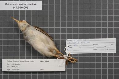 | Keywords: Naturalis Biodiversity Center - RMNH.AVES.99830 2 - Orthotomus sericeus nuntius Bangs, 1922 - Sylviidae - bird skin specimen.jpeg artwork Dimensions artwork Document type Sylviidae Orthotomus Individual count 1 Infraspecific epithet nuntius Infraspecific rank Institution Naturalis Kind of unit artwork Kind of unit specimen skin Life stage Philippines Sibutu Isl Tawitawi Prov Sibutu Hill Area Medium artwork Nomenclatural code Occurrence ID page Other fields Other versions artwork Permission license Naturalis donation CC-0 Publication location Scientific name Orthotomus sericeus nuntius Bangs 1922 Scientific name authorship Bangs 1922 male Source url http //bioportal naturalis nl Specific epithet sericeus State or province Subject keywords artwork Subject keywords publication Title artwork Title publication Type status Uploaded with GWToolset Naturalis_Biodiversity_Center_-_RMNH AVES 99830_2_-_Orthotomus_sericeus_nuntius_Bangs _1922_-_Sylviidae_-_bird_skin_specimen http //medialib naturalis nl/file/id/RMNH AVES 99830_2/format/large Media donated by Naturalis Biodiversity Center Songbird specimens at Naturalis Biodiversity Center Orthotomus sericeus |