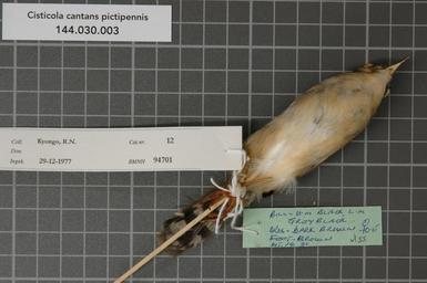 | Keywords: Naturalis Biodiversity Center - RMNH.AVES.94701 2 - Cisticola cantans pictipennis Madarász, 1904 - Sylviidae - bird skin specimen.jpeg artwork Dimensions artwork Document type Sylviidae Cisticola Individual count 1 Infraspecific epithet pictipennis Infraspecific rank Institution Naturalis Kind of unit artwork Kind of unit specimen skin Life stage Kenya Machakos Kilungu Hills Kikoko Medium artwork Nomenclatural code Occurrence ID page Other fields Other versions artwork Permission license Naturalis donation CC-0 Publication location Scientific name Cisticola cantans pictipennis Madarász 1904 Scientific name authorship Madarász 1904 female Source url http //bioportal naturalis nl Specific epithet cantans State or province Machakos Kilungu Hills Subject keywords artwork Subject keywords publication Title artwork Title publication Type status Uploaded with GWToolset Naturalis_Biodiversity_Center_-_RMNH AVES 94701_2_-_Cisticola_cantans_pictipennis_Madarász _1904_-_Sylviidae_-_bird_skin_specimen http //medialib naturalis nl/file/id/RMNH AVES 94701_2/format/large Media donated by Naturalis Biodiversity Center Songbird specimens at Naturalis Biodiversity Center Cisticola cantans museum specimens |
