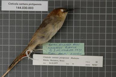 | Keywords: Naturalis Biodiversity Center - RMNH.AVES.94707 1 - Cisticola cantans pictipennis Madarász, 1904 - Sylviidae - bird skin specimen.jpeg artwork Dimensions artwork Document type Sylviidae Cisticola Individual count 1 Infraspecific epithet pictipennis Infraspecific rank Institution Naturalis Kind of unit artwork Kind of unit specimen skin Life stage Kenya Machakos Kilungu Hills Kikoko Medium artwork Nomenclatural code Occurrence ID page Other fields Other versions artwork Permission license Naturalis donation CC-0 Publication location Scientific name Cisticola cantans pictipennis Madarász 1904 Scientific name authorship Madarász 1904 male Source url http //bioportal naturalis nl Specific epithet cantans State or province Machakos Kilungu Hills Subject keywords artwork Subject keywords publication Title artwork Title publication Type status Uploaded with GWToolset Naturalis_Biodiversity_Center_-_RMNH AVES 94707_1_-_Cisticola_cantans_pictipennis_Madarász _1904_-_Sylviidae_-_bird_skin_specimen http //medialib naturalis nl/file/id/RMNH AVES 94707_1/format/large Media donated by Naturalis Biodiversity Center Songbird specimens at Naturalis Biodiversity Center Cisticola cantans museum specimens |