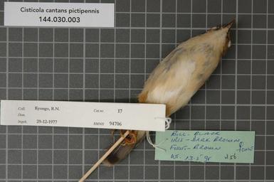 | Keywords: Naturalis Biodiversity Center - RMNH.AVES.94706 2 - Cisticola cantans pictipennis Madarász, 1904 - Sylviidae - bird skin specimen.jpeg artwork Dimensions artwork Document type Sylviidae Cisticola Individual count 1 Infraspecific epithet pictipennis Infraspecific rank Institution Naturalis Kind of unit artwork Kind of unit specimen skin Life stage Kenya Machakos Kilungu Hills Kikoko Medium artwork Nomenclatural code Occurrence ID page Other fields Other versions artwork Permission license Naturalis donation CC-0 Publication location Scientific name Cisticola cantans pictipennis Madarász 1904 Scientific name authorship Madarász 1904 female Source url http //bioportal naturalis nl Specific epithet cantans State or province Machakos Kilungu Hills Subject keywords artwork Subject keywords publication Title artwork Title publication Type status Uploaded with GWToolset Naturalis_Biodiversity_Center_-_RMNH AVES 94706_2_-_Cisticola_cantans_pictipennis_Madarász _1904_-_Sylviidae_-_bird_skin_specimen http //medialib naturalis nl/file/id/RMNH AVES 94706_2/format/large Media donated by Naturalis Biodiversity Center Songbird specimens at Naturalis Biodiversity Center Cisticola cantans museum specimens |