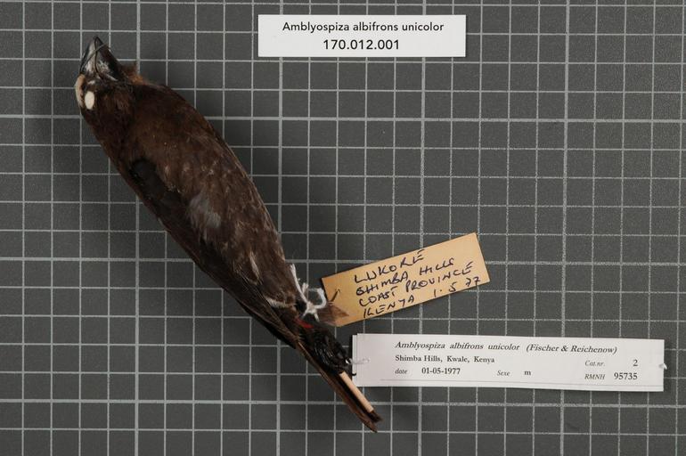 Keywords: Naturalis Biodiversity Center - RMNH.AVES.95735 1 - Amblyospiza albifrons unicolor (Fischer and Reichenow, 1878) - Ploceidae - bird skin specimen.jpeg artwork Dimensions artwork Document type Ploceidae Amblyospiza Individual count 1 Infraspecific epithet unicolor Infraspecific rank Institution Naturalis Kind of unit artwork Kind of unit specimen skin Life stage Kenya Coast Province Kwale Shimba Hills Lukore Medium artwork Nomenclatural code Occurrence ID page Other fields Other versions artwork Permission license Naturalis donation CC-0 Publication location Scientific name Amblyospiza albifrons unicolor Fischer and Reichenow 1878 Scientific name authorship Fischer and Reichenow 1878 male Source url http //bioportal naturalis nl Specific epithet albifrons State or province Coast Province Kwale Shimba Hills Subject keywords artwork Subject keywords publication Title artwork Title publication Type status Uploaded with GWToolset Naturalis_Biodiversity_Center_-_RMNH AVES 95735_1_-_Amblyospiza_albifrons_unicolor_ Fischer_and_Reichenow _1878 _-_Ploceidae_-_bird_skin_specimen http //medialib naturalis nl/file/id/RMNH AVES 95735_1/format/large Media donated by Naturalis Biodiversity Center Songbird specimens at Naturalis Biodiversity Center Amblyospiza albifrons museum specimens |