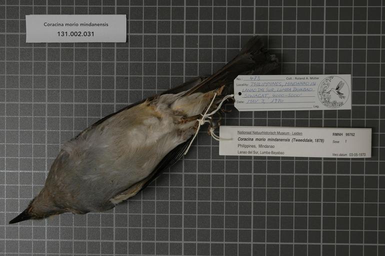 Keywords: Naturalis Biodiversity Center - RMNH.AVES.99762 1 - Coracina morio mindanensis (Tweeddale, 1878) - Campephagidae - bird skin specimen.jpeg artwork Dimensions artwork Document type Campephagidae Coracina Individual count 1 Infraspecific epithet mindanensis Infraspecific rank Institution Naturalis Kind of unit artwork Kind of unit specimen skin Life stage Philippines Mindanao Lanao del Sur Lumba-Bayabao Siwagat Medium artwork Nomenclatural code Occurrence ID page Other fields Other versions artwork Permission license Naturalis donation CC-0 Publication location Scientific name Coracina morio mindanensis Tweeddale 1878 Scientific name authorship Tweeddale 1878 female Source url http //bioportal naturalis nl Specific epithet morio State or province Mindanao Subject keywords artwork Subject keywords publication Title artwork Title publication Type status Uploaded with GWToolset Naturalis_Biodiversity_Center_-_RMNH AVES 99762_1_-_Coracina_morio_mindanensis_ Tweeddale _1878 _-_Campephagidae_-_bird_skin_specimen http //medialib naturalis nl/file/id/RMNH AVES 99762_1/format/large Media donated by Naturalis Biodiversity Center Songbird specimens at Naturalis Biodiversity Center Coracina morio |