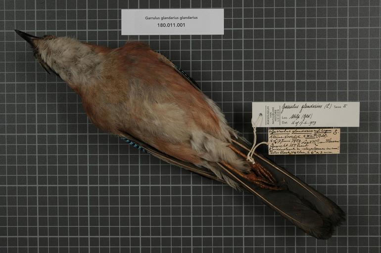 | Keywords: Naturalis Biodiversity Center - RMNH.AVES.68073 1 - Garrulus glandarius glandarius (Linnaeus, 1758) - Corvidae - bird skin specimen.jpeg artwork Dimensions artwork Document type Corvidae Garrulus Individual count 1 Infraspecific epithet glandarius Infraspecific rank Institution Naturalis Kind of unit artwork Kind of unit specimen skin Life stage Netherlands Gelderland Wilp Kleine Noordijk Medium artwork Nomenclatural code ADDITIONAL info see drawing circle preceding name Occurrence ID page Other fields Other versions artwork Permission license Naturalis donation CC-0 Publication location Scientific name Garrulus glandarius glandarius Linnaeus 1758 Scientific name authorship Linnaeus 1758 male Source url http //bioportal naturalis nl Specific epithet glandarius State or province Gelderland Subject keywords artwork Subject keywords publication Title artwork Title publication Type status Uploaded with GWToolset Naturalis_Biodiversity_Center_-_RMNH AVES 68073_1_-_Garrulus_glandarius_glandarius_ Linnaeus _1758 _-_Corvidae_-_bird_skin_specimen http //medialib naturalis nl/file/id/RMNH AVES 68073_1/format/large Media donated by Naturalis Biodiversity Center Songbird specimens at Naturalis Biodiversity Center Garrulus glandarius glandarius museum specimens |