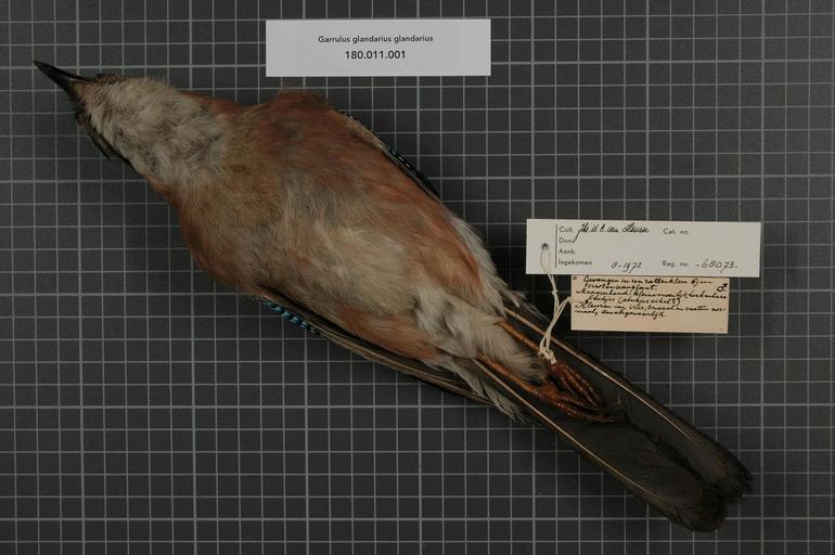 | Keywords: Naturalis Biodiversity Center - RMNH.AVES.68073 2 - Garrulus glandarius glandarius (Linnaeus, 1758) - Corvidae - bird skin specimen.jpeg artwork Dimensions artwork Document type Corvidae Garrulus Individual count 1 Infraspecific epithet glandarius Infraspecific rank Institution Naturalis Kind of unit artwork Kind of unit specimen skin Life stage Netherlands Gelderland Wilp Kleine Noordijk Medium artwork Nomenclatural code ADDITIONAL info see drawing circle preceding name Occurrence ID page Other fields Other versions artwork Permission license Naturalis donation CC-0 Publication location Scientific name Garrulus glandarius glandarius Linnaeus 1758 Scientific name authorship Linnaeus 1758 male Source url http //bioportal naturalis nl Specific epithet glandarius State or province Gelderland Subject keywords artwork Subject keywords publication Title artwork Title publication Type status Uploaded with GWToolset Naturalis_Biodiversity_Center_-_RMNH AVES 68073_2_-_Garrulus_glandarius_glandarius_ Linnaeus _1758 _-_Corvidae_-_bird_skin_specimen http //medialib naturalis nl/file/id/RMNH AVES 68073_2/format/large Media donated by Naturalis Biodiversity Center Songbird specimens at Naturalis Biodiversity Center Garrulus glandarius glandarius museum specimens |