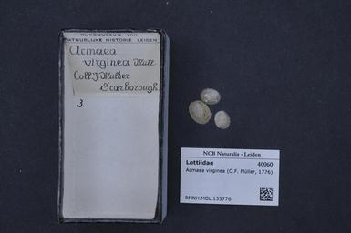 | Keywords: Naturalis Biodiversity Center - RMNH.MOL.135776 - Tectura virginea (Müller, 1776) - Lottiidae - Mollusc shell.jpeg artwork Dimensions artwork Document type Lottiidae Tectura Individual count Infraspecific epithet Infraspecific rank Institution Naturalis Kind of unit artwork Kind of unit specimen shell Life stage Medium artwork Nomenclatural code Source institute Leiden Scale the width of the text on the species/QR-code label is 38 mm Occurrence ID page Other fields Other versions artwork Permission license Naturalis donation CC-0 Mollusca Publication location Scientific name Tectura virginea Müller 1776 Scientific name authorship Müller 1776 Source url http //bioportal naturalis nl Specific epithet virginea State or province Subject keywords artwork Subject keywords publication Title artwork Title publication Type status Uploaded with GWToolset Naturalis_Biodiversity_Center_-_RMNH MOL 135776_-_Tectura_virginea_ Müller _1776 _-_Lottiidae_-_Mollusc_shell http //medialib naturalis nl/file/id/RMNH MOL 135776/format/large Molluscs at Naturalis from the Rijksmuseum van Natuurlijke Historie Media donated by Naturalis Biodiversity Center Tectura virginea |