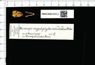 | Keywords: Naturalis Biodiversity Center - RMNH.MAM.14727.a pal - Mormoops megalophylla intermedia - skull.jpeg artwork Dimensions artwork Document type Mormoops Individual count 1 Infraspecific epithet intermedia Infraspecific rank Institution Naturalis Kind of unit artwork Kind of unit specimen skull Life stage Curaçao Cueba Bosá Medium artwork Nomenclatural code Occurrence ID page Other fields Other versions artwork Permission license Naturalis donation CC-0 Publication location Scientific name Mormoops megalophylla intermedia Scientific name authorship male Source url http //bioportal naturalis nl Specific epithet megalophylla State or province Subject keywords artwork Subject keywords publication Title artwork Title publication Type status Uploaded with GWToolset Naturalis_Biodiversity_Center_-_RMNH MAM 14727 a_pal_-_Mormoops_megalophylla_intermedia_-_skull http //medialib naturalis nl/file/id/RMNH MAM 14727 a_pal/format/large Media donated by Naturalis Biodiversity Center Mammals at Naturalis from the Rijksmuseum van Natuurlijke Historie Mormoops megalophylla Mormoops |