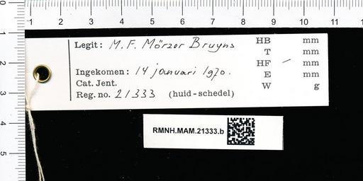 | Keywords: Naturalis Biodiversity Center - RMNH.MAM.21333.b reg - Hipposideros bicolor - skin.jpeg artwork Dimensions artwork Document type Hipposideros Individual count 1 Infraspecific epithet Infraspecific rank Institution Naturalis Kind of unit artwork Kind of unit specimen skin Life stage Nabij vliegveld van Keshod Zuid Gujarat India Medium artwork Nomenclatural code Occurrence ID page Other fields Other versions artwork Permission license Naturalis donation CC-0 Publication location Scientific name Hipposideros bicolor Scientific name authorship Source url http //bioportal naturalis nl Specific epithet bicolor State or province Subject keywords artwork Subject keywords publication Title artwork Title publication Type status Uploaded with GWToolset Naturalis_Biodiversity_Center_-_RMNH MAM 21333 b_reg_-_Hipposideros_bicolor_-_skin http //medialib naturalis nl/file/id/RMNH MAM 21333 b_reg/format/large Media donated by Naturalis Biodiversity Center Mammals at Naturalis from the Rijksmuseum van Natuurlijke Historie Hipposideros bicolor Hipposideros |