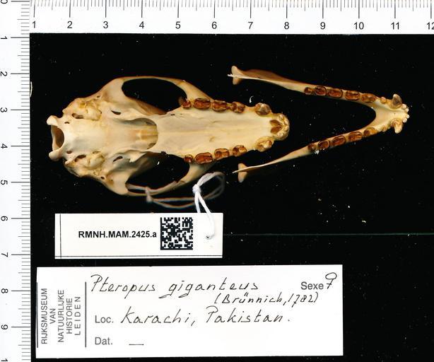Keywords: Naturalis Biodiversity Center - RMNH.MAM.2425.a pal - Pteropus giganteus - skull.jpeg artwork Dimensions artwork Document type Pteropus Individual count 1 Infraspecific epithet Infraspecific rank Institution Naturalis Kind of unit artwork Kind of unit specimen skull Life stage Karachi Pakistan Medium artwork Nomenclatural code Occurrence ID page Other fields Other versions artwork Permission license Naturalis donation CC-0 Publication location Scientific name Pteropus giganteus Scientific name authorship female Source url http //bioportal naturalis nl Specific epithet giganteus State or province Subject keywords artwork Subject keywords publication Title artwork Title publication Type status Uploaded with GWToolset Naturalis_Biodiversity_Center_-_RMNH MAM 2425 a_pal_-_Pteropus_giganteus_-_skull http //medialib naturalis nl/file/id/RMNH MAM 2425 a_pal/format/large Media donated by Naturalis Biodiversity Center Mammals at Naturalis from the Rijksmuseum van Natuurlijke Historie Pteropus giganteus Pteropus |