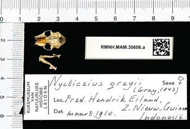 | Keywords: Naturalis Biodiversity Center - RMNH.MAM.30606.a pal - Scotorepens greyii - skull.jpeg artwork Dimensions artwork Document type Scotorepens Individual count 1 Infraspecific epithet Infraspecific rank Institution Naturalis Kind of unit artwork Kind of unit specimen skull Life stage Fred Hendrik Eiland Z Nieuw Guinea Indonesia Medium artwork Nomenclatural code Occurrence ID page Other fields Other versions artwork Permission license Naturalis donation CC-0 Publication location Scientific name Scotorepens greyii Scientific name authorship female Source url http //bioportal naturalis nl Specific epithet greyii State or province Subject keywords artwork Subject keywords publication Title artwork Title publication Type status Uploaded with GWToolset Naturalis_Biodiversity_Center_-_RMNH MAM 30606 a_pal_-_Scotorepens_greyii_-_skull http //medialib naturalis nl/file/id/RMNH MAM 30606 a_pal/format/large Media donated by Naturalis Biodiversity Center Mammals at Naturalis from the Rijksmuseum van Natuurlijke Historie Scotorepens greyii Scotorepens |