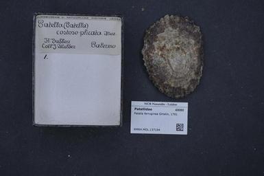 | Keywords: Naturalis Biodiversity Center - RMNH.MOL.137194 - Patella ferruginea Gmelin, 1791 - Patellidae - Mollusc shell.jpeg artwork Dimensions artwork Document type Patellidae subfamily Patellinae Patella Individual count Infraspecific epithet Infraspecific rank Institution Naturalis Kind of unit artwork Kind of unit specimen shell Life stage Medium artwork Nomenclatural code Source institute Leiden Scale the width of the text on the species/QR-code label is 38 mm Occurrence ID page Other fields Other versions artwork Permission license Naturalis donation CC-0 Mollusca Publication location Scientific name Patella ferruginea Gmelin 1791 Scientific name authorship Gmelin 1791 Source url http //bioportal naturalis nl Specific epithet ferruginea State or province Subject keywords artwork Subject keywords publication Title artwork Title publication Type status Uploaded with GWToolset Naturalis_Biodiversity_Center_-_RMNH MOL 137194_-_Patella_ferruginea_Gmelin _1791_-_Patellidae_-_Mollusc_shell http //medialib naturalis nl/file/id/RMNH MOL 137194/format/large Molluscs at Naturalis from the Rijksmuseum van Natuurlijke Historie Media donated by Naturalis Biodiversity Center Patella mollusc Patella ferruginea |