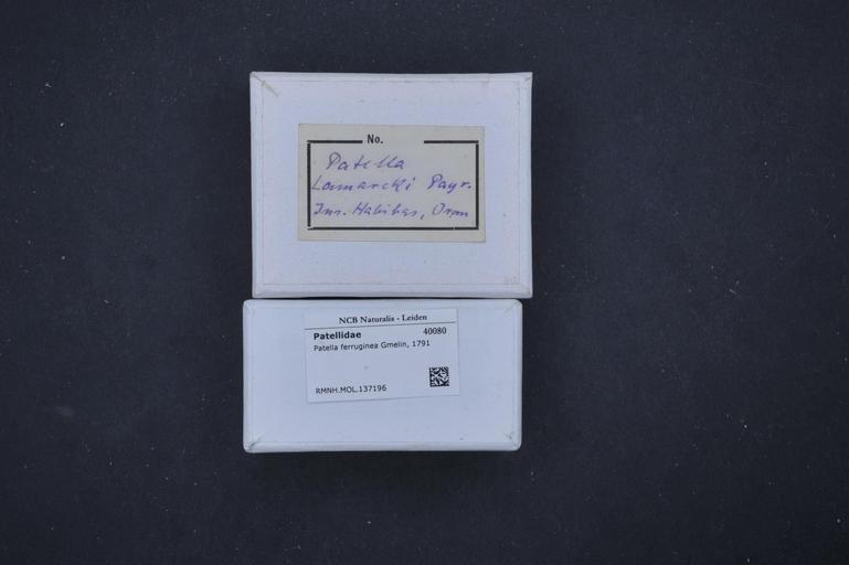 | Keywords: Naturalis Biodiversity Center - RMNH.MOL.137196 1 - Patella ferruginea Gmelin, 1791 - Patellidae - Mollusc shell.jpeg artwork Dimensions artwork Document type Patellidae subfamily Patellinae Patella Individual count Infraspecific epithet Infraspecific rank Institution Naturalis Kind of unit artwork Kind of unit specimen shell Life stage Medium artwork Nomenclatural code Source institute Leiden Scale the width of the text on the species/QR-code label is 38 mm Occurrence ID page Other fields Other versions artwork Permission license Naturalis donation CC-0 Mollusca Publication location Scientific name Patella ferruginea Gmelin 1791 Scientific name authorship Gmelin 1791 Source url http //bioportal naturalis nl Specific epithet ferruginea State or province Subject keywords artwork Subject keywords publication Title artwork Title publication Type status Uploaded with GWToolset Naturalis_Biodiversity_Center_-_RMNH MOL 137196_1_-_Patella_ferruginea_Gmelin _1791_-_Patellidae_-_Mollusc_shell http //medialib naturalis nl/file/id/RMNH MOL 137196_1/format/large Molluscs at Naturalis from the Rijksmuseum van Natuurlijke Historie Media donated by Naturalis Biodiversity Center Patella mollusc Patella ferruginea |