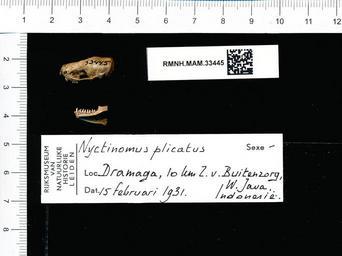 | Keywords: Naturalis Biodiversity Center - RMNH.MAM.33445 lat - Chaerephon plicatus - skull.jpeg artwork Dimensions artwork Document type Chaerephon Individual count 1 Infraspecific epithet Infraspecific rank Institution Naturalis Kind of unit artwork Kind of unit specimen skull Life stage Dramaga 10 km Z v Buitenzorg W Java Indonesia Medium artwork Nomenclatural code Occurrence ID page Other fields Other versions artwork Permission license Naturalis donation CC-0 Publication location Scientific name Chaerephon plicatus Scientific name authorship Source url http //bioportal naturalis nl Specific epithet plicatus State or province Subject keywords artwork Subject keywords publication Title artwork Title publication Type status Uploaded with GWToolset Naturalis_Biodiversity_Center_-_RMNH MAM 33445_lat_-_Chaerephon_plicatus_-_skull http //medialib naturalis nl/file/id/RMNH MAM 33445_lat/format/large Media donated by Naturalis Biodiversity Center Mammals at Naturalis from the Rijksmuseum van Natuurlijke Historie Chaerephon plicatus |