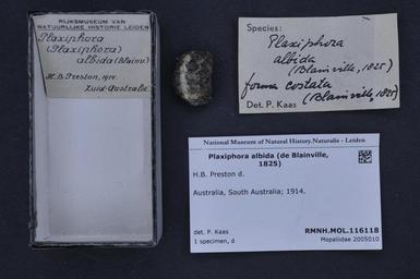 | Keywords: Naturalis Biodiversity Center - RMNH.MOL.116118 - Plaxiphora albida (de Blainville, 1825) - Mopaliidae - Mollusc shell.jpeg artwork Dimensions artwork Document type Mopaliidae subfamily Mopaliinae Plaxiphora Kaas P Individual count Infraspecific epithet Infraspecific rank Institution Naturalis Kind of unit artwork Kind of unit specimen shell Life stage Australia South Australia; 1914 Medium artwork Nomenclatural code Source institute Leiden Scale the width of the text on the species/QR-code label is 38 mm Occurrence ID page Other fields Other versions artwork Permission license Naturalis donation CC-0 Mollusca Publication location Scientific name Plaxiphora albida de Blainville 1825 Scientific name authorship De Blainville 1825 Source url http //bioportal naturalis nl Specific epithet albida State or province South Australia Subject keywords artwork Subject keywords publication Title artwork Title publication Type status - Uploaded with GWToolset Naturalis_Biodiversity_Center_-_RMNH MOL 116118_-_Plaxiphora_albida_ de_Blainville _1825 _-_Mopaliidae_-_Mollusc_shell http //medialib naturalis nl/file/id/RMNH MOL 116118/format/large Molluscs at Naturalis from the Rijksmuseum van Natuurlijke Historie Media donated by Naturalis Biodiversity Center Plaxiphora Plaxiphora albida |