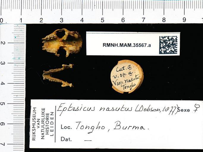 | Keywords: Naturalis Biodiversity Center - RMNH.MAM.35567.a pal - Eptesicus nasutus - skull.jpeg artwork Dimensions artwork Document type Eptesicus Individual count 1 Infraspecific epithet Infraspecific rank Institution Naturalis Kind of unit artwork Kind of unit specimen skull Life stage Tongho Burma Medium artwork Nomenclatural code Occurrence ID page Other fields Other versions artwork Permission license Naturalis donation CC-0 Publication location Scientific name Eptesicus nasutus Scientific name authorship female Source url http //bioportal naturalis nl Specific epithet nasutus State or province Subject keywords artwork Subject keywords publication Title artwork Title publication Type status Uploaded with GWToolset Naturalis_Biodiversity_Center_-_RMNH MAM 35567 a_pal_-_Eptesicus_nasutus_-_skull http //medialib naturalis nl/file/id/RMNH MAM 35567 a_pal/format/large Media donated by Naturalis Biodiversity Center Mammals at Naturalis from the Rijksmuseum van Natuurlijke Historie Eptesicus nasutus Eptesicus skulls |