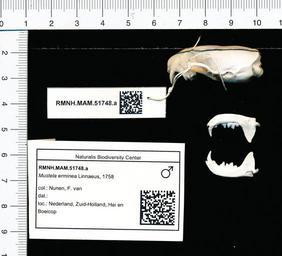 | Keywords: Naturalis Biodiversity Center - RMNH.MAM.51748.a lat - Mustela erminea Linnaeus, 1758 - skull.jpeg artwork Dimensions artwork Document type Mustelidae Mustela Individual count 1 Infraspecific epithet Infraspecific rank Institution Naturalis Kind of unit artwork Kind of unit specimen skull Life stage Nederland Zuid-Holland Hei en Boeicop Medium artwork Nomenclatural code Occurrence ID page Other fields Other versions artwork Permission license Naturalis donation CC-0 Publication location Scientific name Mustela erminea Linnaeus 1758 Scientific name authorship Linnaeus 1758 male Source url http //bioportal naturalis nl Specific epithet erminea State or province Zuid-Holland Subject keywords artwork Subject keywords publication Title artwork Title publication Type status Uploaded with GWToolset Naturalis_Biodiversity_Center_-_RMNH MAM 51748 a_lat_-_Mustela_erminea_Linnaeus _1758_-_skull http //medialib naturalis nl/file/id/RMNH MAM 51748 a_lat/format/large Mammals at Naturalis from the Rijksmuseum van Natuurlijke Historie Media donated by Naturalis Biodiversity Center Mustela erminea Mustela |