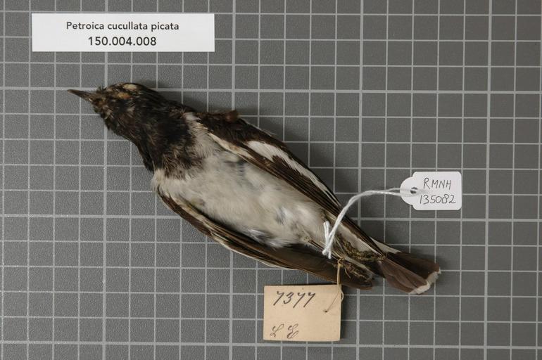 Keywords: Naturalis Biodiversity Center - RMNH.AVES.135082 2 - Petroica cucullata picata (Gould, 1865) - Eopsaltriidae - bird skin specimen.jpeg artwork Dimensions artwork Document type Eopsaltriidae Petroica Individual count 1 Infraspecific epithet picata Infraspecific rank Institution Naturalis Kind of unit artwork Kind of unit specimen skin Life stage Lake Elphinstone Medium artwork Nomenclatural code Additional info L E Occurrence ID page Other fields Other versions artwork Permission license Naturalis donation CC-0 Publication location Scientific name Petroica cucullata picata Gould 1865 Scientific name authorship Gould 1865 Source url http //bioportal naturalis nl Specific epithet cucullata State or province Subject keywords artwork Subject keywords publication Title artwork Title publication Type status Uploaded with GWToolset Naturalis_Biodiversity_Center_-_RMNH AVES 135082_2_-_Petroica_cucullata_picata_ Gould _1865 _-_Eopsaltriidae_-_bird_skin_specimen http //medialib naturalis nl/file/id/RMNH AVES 135082_2/format/large Media donated by Naturalis Biodiversity Center Songbird specimens at Naturalis Biodiversity Center Petroica cucullata Petroica |