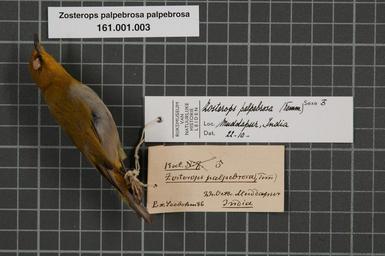 | Keywords: Naturalis Biodiversity Center - RMNH.AVES.133031 1 - Zosterops palpebrosa palpebrosa (Temminck, 1824) - Zosteropidae - bird skin specimen.jpeg artwork Dimensions artwork Document type Zosteropidae Zosterops Individual count 1 Infraspecific epithet palpebrosa Infraspecific rank Institution Naturalis Kind of unit artwork Kind of unit specimen skin Life stage India Muddapur Medium artwork Nomenclatural code Occurrence ID page Other fields Other versions artwork Permission license Naturalis donation CC-0 Publication location Scientific name Zosterops palpebrosa palpebrosa Temminck 1824 Scientific name authorship Temminck 1824 male Source url http //bioportal naturalis nl Specific epithet palpebrosa State or province Subject keywords artwork Subject keywords publication Title artwork Title publication Type status Uploaded with GWToolset Naturalis_Biodiversity_Center_-_RMNH AVES 133031_1_-_Zosterops_palpebrosa_palpebrosa_ Temminck _1824 _-_Zosteropidae_-_bird_skin_specimen http //medialib naturalis nl/file/id/RMNH AVES 133031_1/format/large Media donated by Naturalis Biodiversity Center Songbird specimens at Naturalis Biodiversity Center Zosterops palpebrosus Zosterops |