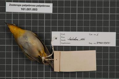 | Keywords: Naturalis Biodiversity Center - RMNH.AVES.133031 2 - Zosterops palpebrosa palpebrosa (Temminck, 1824) - Zosteropidae - bird skin specimen.jpeg artwork Dimensions artwork Document type Zosteropidae Zosterops Individual count 1 Infraspecific epithet palpebrosa Infraspecific rank Institution Naturalis Kind of unit artwork Kind of unit specimen skin Life stage India Muddapur Medium artwork Nomenclatural code Occurrence ID page Other fields Other versions artwork Permission license Naturalis donation CC-0 Publication location Scientific name Zosterops palpebrosa palpebrosa Temminck 1824 Scientific name authorship Temminck 1824 male Source url http //bioportal naturalis nl Specific epithet palpebrosa State or province Subject keywords artwork Subject keywords publication Title artwork Title publication Type status Uploaded with GWToolset Naturalis_Biodiversity_Center_-_RMNH AVES 133031_2_-_Zosterops_palpebrosa_palpebrosa_ Temminck _1824 _-_Zosteropidae_-_bird_skin_specimen http //medialib naturalis nl/file/id/RMNH AVES 133031_2/format/large Media donated by Naturalis Biodiversity Center Songbird specimens at Naturalis Biodiversity Center Zosterops palpebrosus Zosterops |