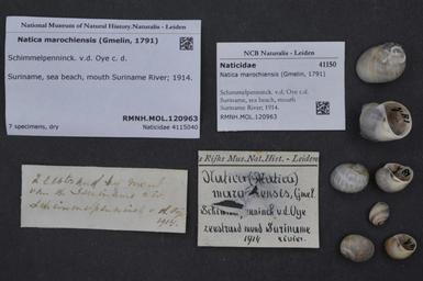 | Keywords: Naturalis Biodiversity Center - RMNH.MOL.120963 - Natica marochiensis (Gmelin, 1791) - Naticidae - Mollusc shell.jpeg artwork Dimensions artwork Document type Naticidae subfamily Naticinae Natica Individual count Infraspecific epithet Infraspecific rank Institution Naturalis Kind of unit artwork Kind of unit specimen shell Life stage Suriname sea beach mouth Suriname River; 1914 Medium artwork Nomenclatural code Source institute Leiden Scale the width of the text on the species/QR-code label is 38 mm Occurrence ID page Other fields Other versions artwork Permission license Naturalis donation CC-0 Mollusca Publication location Scientific name Natica marochiensis Gmelin 1791 Scientific name authorship Gmelin 1791 Source url http //bioportal naturalis nl Specific epithet marochiensis State or province Subject keywords artwork Subject keywords publication Title artwork Title publication Type status - Uploaded with GWToolset Naturalis_Biodiversity_Center_-_RMNH MOL 120963_-_Natica_marochiensis_ Gmelin _1791 _-_Naticidae_-_Mollusc_shell http //medialib naturalis nl/file/id/RMNH MOL 120963/format/large Molluscs at Naturalis from the Rijksmuseum van Natuurlijke Historie Media donated by Naturalis Biodiversity Center Natica Natica marochiensis |