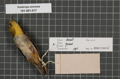 | Keywords: Naturalis Biodiversity Center - RMNH.AVES.133346 2 - Zosterops anomala Meyer & Wiglesworth, 1896 - Zosteropidae - bird skin specimen.jpeg artwork Dimensions artwork Document type Zosteropidae Zosterops Individual count 1 Infraspecific epithet Infraspecific rank Institution Naturalis Kind of unit artwork Kind of unit specimen skin Life stage Indonesia Z Celebes M drulaman Medium artwork Nomenclatural code Occurrence ID page Other fields Other versions artwork Permission license Naturalis donation CC-0 Publication location Scientific name Zosterops anomala Meyer Wiglesworth 1896 Scientific name authorship Meyer Wiglesworth 1896 male Source url http //bioportal naturalis nl Specific epithet anomala State or province Z Celebes Subject keywords artwork Subject keywords publication Title artwork Title publication Type status Uploaded with GWToolset Naturalis_Biodiversity_Center_-_RMNH AVES 133346_2_-_Zosterops_anomala_Meyer_ _Wiglesworth _1896_-_Zosteropidae_-_bird_skin_specimen http //medialib naturalis nl/file/id/RMNH AVES 133346_2/format/large Media donated by Naturalis Biodiversity Center Songbird specimens at Naturalis Biodiversity Center Zosterops anomalus Zosterops |
