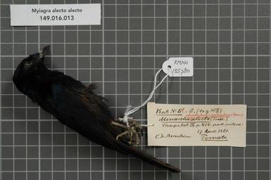 | Keywords: Naturalis Biodiversity Center - RMNH.AVES.135780 1 - Myiagra alecto alecto (Temminck, 1827) - Monarchidae - bird skin specimen.jpeg artwork Dimensions artwork Document type Monarchidae Myiagra Individual count 1 Infraspecific epithet alecto Infraspecific rank Institution Naturalis Kind of unit artwork Kind of unit specimen skin Life stage Ternate Medium artwork Nomenclatural code Additional FAMILY INFO to female N 7 Sex remark male Occurrence ID page Other fields Other versions artwork Permission license Naturalis donation CC-0 Publication location Scientific name Myiagra alecto alecto Temminck 1827 Scientific name authorship Temminck 1827 male Source url http //bioportal naturalis nl Specific epithet alecto State or province Ternate Subject keywords artwork Subject keywords publication Title artwork Title publication Type status Uploaded with GWToolset Naturalis_Biodiversity_Center_-_RMNH AVES 135780_1_-_Myiagra_alecto_alecto_ Temminck _1827 _-_Monarchidae_-_bird_skin_specimen http //medialib naturalis nl/file/id/RMNH AVES 135780_1/format/large Media donated by Naturalis Biodiversity Center Songbird specimens at Naturalis Biodiversity Center Myiagra alecto museum specimens |