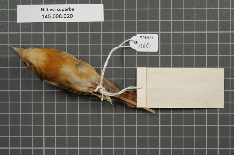 | Keywords: Naturalis Biodiversity Center - RMNH.AVES.136811 2 - Niltava superba (Stresemann, 1925) - Muscicapidae - bird skin specimen.jpeg artwork Dimensions artwork Document type Muscicapidae Niltava Individual count 1 Infraspecific epithet Infraspecific rank Institution Naturalis Kind of unit artwork Kind of unit specimen skin Life stage Indonesia C Borneo Upper Mahakam Medium artwork Nomenclatural code Sex remark on label female lab Occurrence ID page Other fields Other versions artwork Permission license Naturalis donation CC-0 Publication location Scientific name Niltava superba Stresemann 1925 Scientific name authorship Stresemann 1925 female Source url http //bioportal naturalis nl Specific epithet superba State or province C Borneo Upper Mahakam Subject keywords artwork Subject keywords publication Title artwork Title publication Type status Uploaded with GWToolset Naturalis_Biodiversity_Center_-_RMNH AVES 136811_2_-_Niltava_superba_ Stresemann _1925 _-_Muscicapidae_-_bird_skin_specimen http //medialib naturalis nl/file/id/RMNH AVES 136811_2/format/large Media donated by Naturalis Biodiversity Center Songbird specimens at Naturalis Biodiversity Center Cyornis superbus museum specimens |