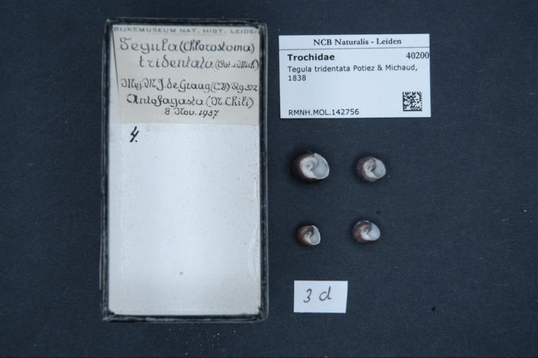 Keywords: Naturalis Biodiversity Center - RMNH.MOL.142756 - Tegula tridentata (Potiez & Michaud, 1838) - Turbinidae - Mollusc shell.jpeg artwork Dimensions artwork Document type Turbinidae Tegula Individual count Infraspecific epithet Infraspecific rank Institution Naturalis Kind of unit artwork Kind of unit specimen shell Life stage Medium artwork Nomenclatural code Source institute Leiden Scale the width of the text on the species/QR-code label is 38 mm Occurrence ID page Other fields Other versions artwork Permission license Naturalis donation CC-0 Mollusca Publication location Scientific name Tegula tridentata Potiez Michaud 1838 Scientific name authorship Potiez Michaud 1838 Source url http //bioportal naturalis nl Specific epithet tridentata State or province Subject keywords artwork Subject keywords publication Title artwork Title publication Type status Uploaded with GWToolset Naturalis_Biodiversity_Center_-_RMNH MOL 142756_-_Tegula_tridentata_ Potiez_ _Michaud _1838 _-_Turbinidae_-_Mollusc_shell http //medialib naturalis nl/file/id/RMNH MOL 142756/format/large Molluscs at Naturalis from the Rijksmuseum van Natuurlijke Historie Media donated by Naturalis Biodiversity Center Tegula Tegula tridentata |