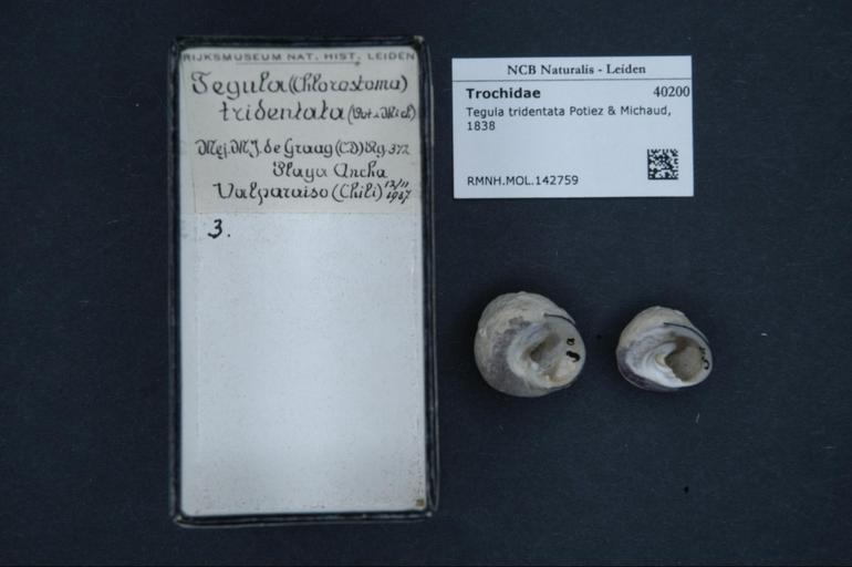 Keywords: Naturalis Biodiversity Center - RMNH.MOL.142759 - Tegula tridentata (Potiez & Michaud, 1838) - Turbinidae - Mollusc shell.jpeg artwork Dimensions artwork Document type Turbinidae Tegula Individual count Infraspecific epithet Infraspecific rank Institution Naturalis Kind of unit artwork Kind of unit specimen shell Life stage Medium artwork Nomenclatural code Source institute Leiden Scale the width of the text on the species/QR-code label is 38 mm Occurrence ID page Other fields Other versions artwork Permission license Naturalis donation CC-0 Mollusca Publication location Scientific name Tegula tridentata Potiez Michaud 1838 Scientific name authorship Potiez Michaud 1838 Source url http //bioportal naturalis nl Specific epithet tridentata State or province Subject keywords artwork Subject keywords publication Title artwork Title publication Type status Uploaded with GWToolset Naturalis_Biodiversity_Center_-_RMNH MOL 142759_-_Tegula_tridentata_ Potiez_ _Michaud _1838 _-_Turbinidae_-_Mollusc_shell http //medialib naturalis nl/file/id/RMNH MOL 142759/format/large Molluscs at Naturalis from the Rijksmuseum van Natuurlijke Historie Media donated by Naturalis Biodiversity Center Tegula Tegula tridentata |