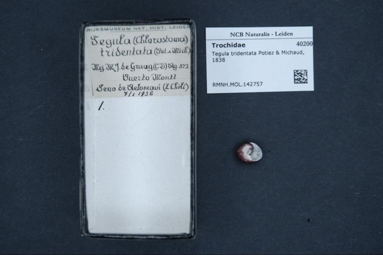 Keywords: Naturalis Biodiversity Center - RMNH.MOL.142757 - Tegula tridentata (Potiez & Michaud, 1838) - Turbinidae - Mollusc shell.jpeg artwork Dimensions artwork Document type Turbinidae Tegula Individual count Infraspecific epithet Infraspecific rank Institution Naturalis Kind of unit artwork Kind of unit specimen shell Life stage Medium artwork Nomenclatural code Source institute Leiden Scale the width of the text on the species/QR-code label is 38 mm Occurrence ID page Other fields Other versions artwork Permission license Naturalis donation CC-0 Mollusca Publication location Scientific name Tegula tridentata Potiez Michaud 1838 Scientific name authorship Potiez Michaud 1838 Source url http //bioportal naturalis nl Specific epithet tridentata State or province Subject keywords artwork Subject keywords publication Title artwork Title publication Type status Uploaded with GWToolset Naturalis_Biodiversity_Center_-_RMNH MOL 142757_-_Tegula_tridentata_ Potiez_ _Michaud _1838 _-_Turbinidae_-_Mollusc_shell http //medialib naturalis nl/file/id/RMNH MOL 142757/format/large Molluscs at Naturalis from the Rijksmuseum van Natuurlijke Historie Media donated by Naturalis Biodiversity Center Tegula Tegula tridentata |