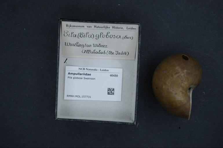 Keywords: Naturalis Biodiversity Center - RMNH.MOL.157731 - Pila globosa Swainson - Ampullariidae - Mollusc shell.jpeg artwork Dimensions artwork Document type Ampullariidae Pila Individual count Infraspecific epithet Infraspecific rank Institution Naturalis Kind of unit artwork Kind of unit specimen shell Life stage Medium artwork Nomenclatural code Scale the width of the text on the species/QR-code label is 38 mm Occurrence ID page Other fields Other versions artwork Permission license Naturalis donation CC-0 Mollusca Publication location Scientific name Pila globosa Swainson Scientific name authorship Swainson Source url http //bioportal naturalis nl Specific epithet globosa State or province Subject keywords artwork Subject keywords publication Title artwork Title publication Type status Uploaded with GWToolset Naturalis_Biodiversity_Center_-_RMNH MOL 157731_-_Pila_globosa_Swainson_-_Ampullariidae_-_Mollusc_shell http //medialib naturalis nl/file/id/RMNH MOL 157731/format/large Media donated by Naturalis Biodiversity Center Molluscs at Naturalis from the Rijksmuseum van Natuurlijke Historie Pila globosa Pila genus |