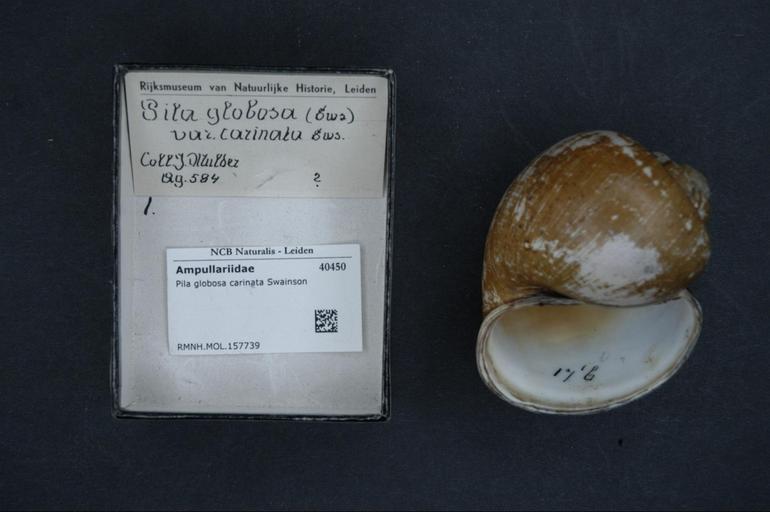 Keywords: Naturalis Biodiversity Center - RMNH.MOL.157739 - Pila globosa carinata Swainson - Ampullariidae - Mollusc shell.jpeg artwork Dimensions artwork Document type Ampullariidae Pila Individual count Infraspecific epithet carinata Infraspecific rank Institution Naturalis Kind of unit artwork Kind of unit specimen shell Life stage Medium artwork Nomenclatural code Scale the width of the text on the species/QR-code label is 38 mm Occurrence ID page Other fields Other versions artwork Permission license Naturalis donation CC-0 Mollusca Publication location Scientific name Pila globosa carinata Swainson Scientific name authorship Swainson Source url http //bioportal naturalis nl Specific epithet globosa State or province Subject keywords artwork Subject keywords publication Title artwork Title publication Type status Uploaded with GWToolset Naturalis_Biodiversity_Center_-_RMNH MOL 157739_-_Pila_globosa_carinata_Swainson_-_Ampullariidae_-_Mollusc_shell http //medialib naturalis nl/file/id/RMNH MOL 157739/format/large Media donated by Naturalis Biodiversity Center Molluscs at Naturalis from the Rijksmuseum van Natuurlijke Historie Pila globosa Pila genus |