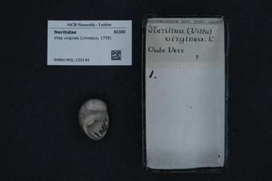 | Keywords: Naturalis Biodiversity Center - RMNH.MOL.150142 - Vitta virginea (Linnaeus, 1758) - Neritidae - Mollusc shell.jpeg artwork Dimensions artwork Document type Neritidae Vitta Individual count Infraspecific epithet Infraspecific rank Institution Naturalis Kind of unit artwork Kind of unit specimen shell Life stage Medium artwork Nomenclatural code Scale the width of the text on the species/QR-code label is 38 mm Occurrence ID page Other fields Other versions artwork Permission license Naturalis donation CC-0 Mollusca Publication location Scientific name Vitta virginea Linnaeus 1758 Scientific name authorship Linnaeus 1758 Source url http //bioportal naturalis nl Specific epithet virginea State or province Subject keywords artwork Subject keywords publication Title artwork Title publication Type status Uploaded with GWToolset Naturalis_Biodiversity_Center_-_RMNH MOL 150142_-_Vitta_virginea_ Linnaeus _1758 _-_Neritidae_-_Mollusc_shell http //medialib naturalis nl/file/id/RMNH MOL 150142/format/large Media donated by Naturalis Biodiversity Center Molluscs at Naturalis from the Rijksmuseum van Natuurlijke Historie Vitta virginea |