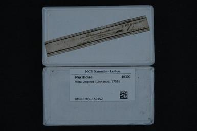| Keywords: Naturalis Biodiversity Center - RMNH.MOL.150152 1 - Vitta virginea (Linnaeus, 1758) - Neritidae - Mollusc shell.jpeg artwork Dimensions artwork Document type Neritidae Vitta Individual count Infraspecific epithet Infraspecific rank Institution Naturalis Kind of unit artwork Kind of unit specimen shell Life stage Medium artwork Nomenclatural code Scale the width of the text on the species/QR-code label is 38 mm Occurrence ID page Other fields Other versions artwork Permission license Naturalis donation CC-0 Mollusca Publication location Scientific name Vitta virginea Linnaeus 1758 Scientific name authorship Linnaeus 1758 Source url http //bioportal naturalis nl Specific epithet virginea State or province Subject keywords artwork Subject keywords publication Title artwork Title publication Type status Uploaded with GWToolset Naturalis_Biodiversity_Center_-_RMNH MOL 150152_1_-_Vitta_virginea_ Linnaeus _1758 _-_Neritidae_-_Mollusc_shell http //medialib naturalis nl/file/id/RMNH MOL 150152_1/format/large Media donated by Naturalis Biodiversity Center Molluscs at Naturalis from the Rijksmuseum van Natuurlijke Historie Vitta virginea |