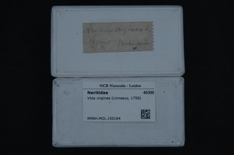 | Keywords: Naturalis Biodiversity Center - RMNH.MOL.150164 1 - Vitta virginea (Linnaeus, 1758) - Neritidae - Mollusc shell.jpeg artwork Dimensions artwork Document type Neritidae Vitta Individual count Infraspecific epithet Infraspecific rank Institution Naturalis Kind of unit artwork Kind of unit specimen shell Life stage Medium artwork Nomenclatural code Scale the width of the text on the species/QR-code label is 38 mm Occurrence ID page Other fields Other versions artwork Permission license Naturalis donation CC-0 Mollusca Publication location Scientific name Vitta virginea Linnaeus 1758 Scientific name authorship Linnaeus 1758 Source url http //bioportal naturalis nl Specific epithet virginea State or province Subject keywords artwork Subject keywords publication Title artwork Title publication Type status Uploaded with GWToolset Naturalis_Biodiversity_Center_-_RMNH MOL 150164_1_-_Vitta_virginea_ Linnaeus _1758 _-_Neritidae_-_Mollusc_shell http //medialib naturalis nl/file/id/RMNH MOL 150164_1/format/large Media donated by Naturalis Biodiversity Center Molluscs at Naturalis from the Rijksmuseum van Natuurlijke Historie Vitta virginea |