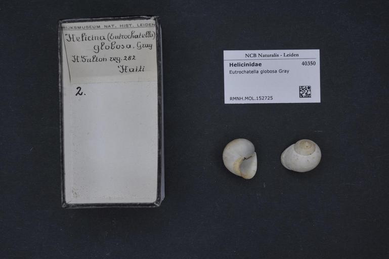 Keywords: Naturalis Biodiversity Center - RMNH.MOL.152725 - Eutrochatella globosa Gray - Helicinidae - Mollusc shell.jpeg artwork Dimensions artwork Document type Helicinidae subfamily Vianinae Eutrochatella Individual count Infraspecific epithet Infraspecific rank Institution Naturalis Kind of unit artwork Kind of unit specimen shell Life stage Medium artwork Nomenclatural code Scale the width of the text on the species/QR-code label is 38 mm Occurrence ID page Other fields Other versions artwork Permission license Naturalis donation CC-0 Mollusca Publication location Scientific name Eutrochatella globosa Gray Scientific name authorship Sowerby 1839 Source url http //bioportal naturalis nl Specific epithet globosa State or province Subject keywords artwork Subject keywords publication Title artwork Title publication Type status Uploaded with GWToolset Naturalis_Biodiversity_Center_-_RMNH MOL 152725_-_Eutrochatella_globosa_Gray_-_Helicinidae_-_Mollusc_shell http //medialib naturalis nl/file/id/RMNH MOL 152725/format/large Media donated by Naturalis Biodiversity Center Molluscs at Naturalis from the Rijksmuseum van Natuurlijke Historie Eutrochatella globosa Eutrochatella |