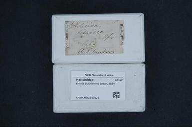 | Keywords: Naturalis Biodiversity Center - RMNH.MOL.153028 1 - Emoda pulcherrima Leach, 1834 - Helicinidae - Mollusc shell.jpeg artwork Dimensions artwork Document type Helicinidae Emoda Individual count Infraspecific epithet Infraspecific rank Institution Naturalis Kind of unit artwork Kind of unit specimen shell Life stage Medium artwork Nomenclatural code Scale the width of the text on the species/QR-code label is 38 mm Occurrence ID page Other fields Other versions artwork Permission license Naturalis donation CC-0 Mollusca Publication location Scientific name Emoda pulcherrima Leach 1834 Scientific name authorship Leach 1834 Source url http //bioportal naturalis nl Specific epithet pulcherrima State or province Subject keywords artwork Subject keywords publication Title artwork Title publication Type status Uploaded with GWToolset Naturalis_Biodiversity_Center_-_RMNH MOL 153028_1_-_Emoda_pulcherrima_Leach _1834_-_Helicinidae_-_Mollusc_shell http //medialib naturalis nl/file/id/RMNH MOL 153028_1/format/large Media donated by Naturalis Biodiversity Center Molluscs at Naturalis from the Rijksmuseum van Natuurlijke Historie Emoda pulcherrima Emoda |