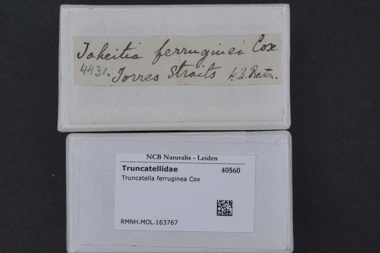 | Keywords: Naturalis Biodiversity Center - RMNH.MOL.163767 1 - Truncatella ferruginea Cox - Truncatellidae - Mollusc shell.jpeg artwork Dimensions artwork Document type Truncatellidae Truncatella Individual count Infraspecific epithet Infraspecific rank Institution Naturalis Kind of unit artwork Kind of unit specimen shell Life stage Medium artwork Nomenclatural code Scale the width of the text on the species/QR-code label is 38 mm Occurrence ID page Other fields Other versions artwork Permission license Naturalis donation CC-0 Mollusca Publication location Scientific name Truncatella ferruginea Cox Scientific name authorship Cox Source url http //bioportal naturalis nl Specific epithet ferruginea State or province Subject keywords artwork Subject keywords publication Title artwork Title publication Type status Uploaded with GWToolset Naturalis_Biodiversity_Center_-_RMNH MOL 163767_1_-_Truncatella_ferruginea_Cox_-_Truncatellidae_-_Mollusc_shell http //medialib naturalis nl/file/id/RMNH MOL 163767_1/format/large Media donated by Naturalis Biodiversity Center Molluscs at Naturalis from the Rijksmuseum van Natuurlijke Historie Truncatella ferruginea Truncatella |