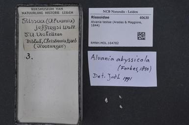 | Keywords: Naturalis Biodiversity Center - RMNH.MOL.164782 - Alvania testae (Aradas & Maggiore, 1844) - Rissoidae - Mollusc shell.jpeg artwork Dimensions artwork Document type Rissoidae subfamily Rissoinae Alvania Individual count Infraspecific epithet Infraspecific rank Institution Naturalis Kind of unit artwork Kind of unit specimen shell Life stage Medium artwork Nomenclatural code Scale the width of the text on the species/QR-code label is 38 mm Occurrence ID page Other fields Other versions artwork Permission license Naturalis donation CC-0 Mollusca Publication location Scientific name Alvania testae Aradas Maggiore 1844 Scientific name authorship Aradas Maggiore 1844 Source url http //bioportal naturalis nl Specific epithet testae State or province Subject keywords artwork Subject keywords publication Title artwork Title publication Type status Uploaded with GWToolset Naturalis_Biodiversity_Center_-_RMNH MOL 164782_-_Alvania_testae_ Aradas_ _Maggiore _1844 _-_Rissoidae_-_Mollusc_shell http //medialib naturalis nl/file/id/RMNH MOL 164782/format/large Media donated by Naturalis Biodiversity Center Molluscs at Naturalis from the Rijksmuseum van Natuurlijke Historie Alvania testae |