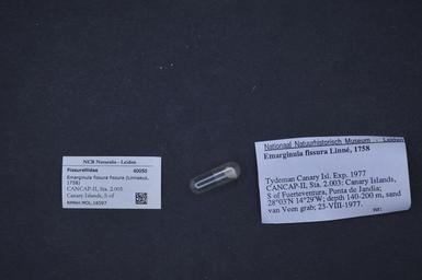 | Keywords: Naturalis Biodiversity Center - RMNH.MOL.16597 - Emarginula fissura (Linnaeus, 1758) - Fissurellidae - Mollusc shell.jpeg artwork Dimensions artwork Document type Fissurellidae subfamily Emarginulinae Emarginula J Goud/ M Lavalije Individual count Infraspecific epithet Infraspecific rank Institution Naturalis Kind of unit artwork Kind of unit specimen shell Life stage CANCAP-II Sta 2 003 Canary Islands S of Fuerteventura Punta de Jandia; 28°03'N 14°29'W; depth 140-200 m sand; van Veen grab; 23 viii 1977 Medium artwork Nomenclatural code Source institute Leiden Scale the width of the text on the species/QR-code label is 38 mm Occurrence ID page Other fields Other versions artwork Permission license Naturalis donation CC-0 Mollusca Publication location Scientific name Emarginula fissura Linnaeus 1758 Scientific name authorship Linnaeus 1758 Source url http //bioportal naturalis nl Specific epithet fissura State or province Canary Islands Subject keywords artwork Subject keywords publication Title artwork Title publication Type status Uploaded with GWToolset Naturalis_Biodiversity_Center_-_RMNH MOL 16597_-_Emarginula_fissura_ Linnaeus _1758 _-_Fissurellidae_-_Mollusc_shell http //medialib naturalis nl/file/id/RMNH MOL 16597/format/large Media donated by Naturalis Biodiversity Center Molluscs at Naturalis from the Rijksmuseum van Natuurlijke Historie Emarginula fissura Emarginula |