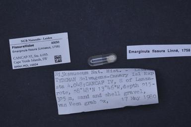 | Keywords: Naturalis Biodiversity Center - RMNH.MOL.16604 - Emarginula fissura (Linnaeus, 1758) - Fissurellidae - Mollusc shell.jpeg artwork Dimensions artwork Document type Fissurellidae subfamily Emarginulinae Emarginula Kielman M Individual count Infraspecific epithet Infraspecific rank Institution Naturalis Kind of unit artwork Kind of unit specimen Life stage CANCAP-VI Sta 6 093 Cape Verde Islands SW of Razo; 16°36'N 24°37'W; depth 400-430 m sand and shell gravel; van Veen grab; 15 vi 1982 Medium artwork Nomenclatural code Source institute Leiden Scale the width of the text on the species/QR-code label is 38 mm Occurrence ID page Other fields Other versions artwork Permission license Naturalis donation CC-0 Mollusca Publication location Scientific name Emarginula fissura Linnaeus 1758 Scientific name authorship Linnaeus 1758 Source url http //bioportal naturalis nl Specific epithet fissura State or province Razo Subject keywords artwork Subject keywords publication Title artwork Title publication Type status Uploaded with GWToolset Naturalis_Biodiversity_Center_-_RMNH MOL 16604_-_Emarginula_fissura_ Linnaeus _1758 _-_Fissurellidae_-_Mollusc_shell http //medialib naturalis nl/file/id/RMNH MOL 16604/format/large Media donated by Naturalis Biodiversity Center Molluscs at Naturalis from the Rijksmuseum van Natuurlijke Historie Emarginula fissura Emarginula |