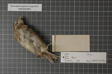 | Keywords: Naturalis Biodiversity Center - RMNH.AVES.122307 2 - Eremophila alpestris longirostris (Moore, 1856) - Alaudidae - bird skin specimen.jpeg artwork Dimensions artwork Document type Alaudidae Eremophila Individual count 1 Infraspecific epithet longirostris Infraspecific rank Institution Naturalis Kind of unit artwork Kind of unit specimen skin Life stage juvenile Himalaya Medium artwork Nomenclatural code Region remark Frank Occurrence ID page Other fields Other versions artwork Permission license Naturalis donation CC-0 Publication location Scientific name Eremophila alpestris longirostris Moore 1856 Scientific name authorship Moore 1856 Source url http //bioportal naturalis nl Specific epithet alpestris State or province Himalaya Subject keywords artwork Subject keywords publication Title artwork Title publication Type status Uploaded with GWToolset Naturalis_Biodiversity_Center_-_RMNH AVES 122307_2_-_Eremophila_alpestris_longirostris_ Moore _1856 _-_Alaudidae_-_bird_skin_specimen http //medialib naturalis nl/file/id/RMNH AVES 122307_2/format/large Media donated by Naturalis Biodiversity Center Songbird specimens at Naturalis Biodiversity Center Eremophila alpestris |