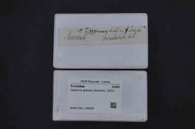 | Keywords: Naturalis Biodiversity Center - RMNH.MOL.188090 1 - Cleotrivia globosa (Sowerby, 1832) - Triviidae - Mollusc shell.jpeg artwork Dimensions artwork Document type Triviidae Cleotrivia Individual count Infraspecific epithet Infraspecific rank Institution Naturalis Kind of unit artwork Kind of unit specimen shell Life stage Medium artwork Nomenclatural code Source institute Rijksmuseum van Natuurlijke Historie Leiden Scale the width of the text on the species/QR-code label is 38 mm Occurrence ID page Other fields Other versions artwork Permission license Naturalis donation CC-0 Mollusca Publication location Scientific name Cleotrivia globosa Sowerby 1832 Scientific name authorship Sowerby 1832 Source url http //bioportal naturalis nl Specific epithet globosa State or province Subject keywords artwork Subject keywords publication Title artwork Title publication Type status Uploaded with GWToolset Naturalis_Biodiversity_Center_-_RMNH MOL 188090_1_-_Cleotrivia_globosa_ Sowerby _1832 _-_Triviidae_-_Mollusc_shell http //medialib naturalis nl/file/id/RMNH MOL 188090_1/format/large Media donated by Naturalis Biodiversity Center Molluscs at Naturalis from the Rijksmuseum van Natuurlijke Historie Cleotrivia globosa Cleotrivia |