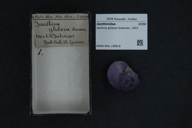 | Keywords: Naturalis Biodiversity Center - RMNH.MOL.196818 - Janthina globosa Swainson, 1822 - Janthinidae - Mollusc shell.jpeg artwork Dimensions artwork Document type Janthinidae Janthina Individual count Infraspecific epithet Infraspecific rank Institution Naturalis Kind of unit artwork Kind of unit specimen shell Life stage Medium artwork Nomenclatural code Source institute Rijksmuseum van Natuurlijke Historie Leiden Scale the width of the text on the species/QR-code label is 38 mm Occurrence ID page Other fields Other versions artwork Permission license Naturalis donation CC-0 Mollusca Publication location Scientific name Janthina globosa Swainson 1822 Scientific name authorship Swainson 1822 Source url http //bioportal naturalis nl Specific epithet globosa State or province Subject keywords artwork Subject keywords publication Title artwork Title publication Type status Uploaded with GWToolset Naturalis_Biodiversity_Center_-_RMNH MOL 196818_-_Janthina_globosa_Swainson _1822_-_Janthinidae_-_Mollusc_shell http //medialib naturalis nl/file/id/RMNH MOL 196818/format/large Media donated by Naturalis Biodiversity Center Molluscs at Naturalis from the Rijksmuseum van Natuurlijke Historie Janthina globosa |