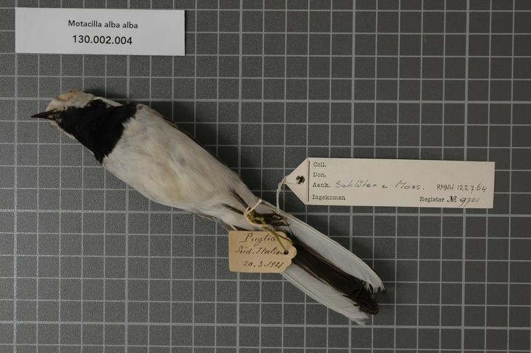 Keywords: Naturalis Biodiversity Center - RMNH.AVES.122764 2 - Motacilla alba alba Linnaeus, 1758 - Motacillidae - bird skin specimen.jpeg artwork Dimensions artwork Document type Motacillidae Motacilla Individual count 1 Infraspecific epithet alba Infraspecific rank Institution Naturalis Kind of unit artwork Kind of unit specimen skin Life stage adult Zuid Italiƫ Puglia Medium artwork Nomenclatural code Occurrence ID page Other fields Other versions artwork Permission license Naturalis donation CC-0 Publication location Scientific name Motacilla alba alba Linnaeus 1758 Scientific name authorship Linnaeus 1758 male Source url http //bioportal naturalis nl Specific epithet alba State or province Zuid Italiƫ Puglia Subject keywords artwork Subject keywords publication Title artwork Title publication Type status Uploaded with GWToolset Naturalis_Biodiversity_Center_-_RMNH AVES 122764_2_-_Motacilla_alba_alba_Linnaeus _1758_-_Motacillidae_-_bird_skin_specimen http //medialib naturalis nl/file/id/RMNH AVES 122764_2/format/large Media donated by Naturalis Biodiversity Center Songbird specimens at Naturalis Biodiversity Center Motacilla alba museum specimens |