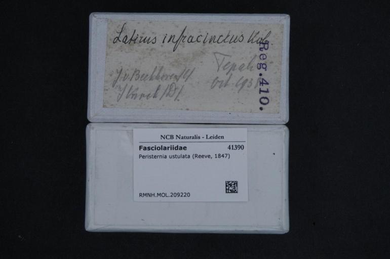 Keywords: Naturalis Biodiversity Center - RMNH.MOL.209220 1 - Peristernia ustulata (Reeve, 1847) - Fasciolariidae - Mollusc shell.jpeg artwork Dimensions artwork Document type Fasciolariidae subfamily Peristerniinae Peristernia Individual count Infraspecific epithet Infraspecific rank Institution Naturalis Kind of unit artwork Kind of unit specimen shell Life stage Medium artwork Nomenclatural code Source institute Rijksmuseum van Natuurlijke Historie Leiden Scale the width of the text on the species/QR-code label is 38 mm Occurrence ID page Other fields Other versions artwork Permission license Naturalis donation CC-0 Mollusca Publication location Scientific name Peristernia ustulata Reeve 1847 Scientific name authorship Reeve 1847 Source url http //bioportal naturalis nl Specific epithet ustulata State or province Subject keywords artwork Subject keywords publication Title artwork Title publication Type status Uploaded with GWToolset Naturalis_Biodiversity_Center_-_RMNH MOL 209220_1_-_Peristernia_ustulata_ Reeve _1847 _-_Fasciolariidae_-_Mollusc_shell http //medialib naturalis nl/file/id/RMNH MOL 209220_1/format/large Media donated by Naturalis Biodiversity Center Molluscs at Naturalis from the Rijksmuseum van Natuurlijke Historie Peristernia ustulata Peristernia |