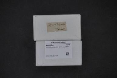 | Keywords: Naturalis Biodiversity Center - RMNH.MOL.210434 1 - Cymbiola vespertilio Linnaeus, 1758 - Volutidae - Mollusc shell.jpeg artwork Dimensions artwork Document type Volutidae Cymbiola Individual count Infraspecific epithet Infraspecific rank Institution Naturalis Kind of unit artwork Kind of unit specimen shell Life stage Medium artwork Nomenclatural code Source institute Rijksmuseum van Natuurlijke Historie Leiden Scale the width of the text on the species/QR-code label is 38 mm Occurrence ID page Neogastropoda Other fields Other versions artwork Permission license Naturalis donation CC-0 Mollusca Publication location Scientific name Cymbiola vespertilio Linnaeus 1758 Scientific name authorship Linnaeus 1758 Source url http //bioportal naturalis nl Specific epithet vespertilio State or province Subject keywords artwork Subject keywords publication Title artwork Title publication Type status Uploaded with GWToolset Naturalis_Biodiversity_Center_-_RMNH MOL 210434_1_-_Cymbiola_vespertilio_Linnaeus _1758_-_Volutidae_-_Mollusc_shell http //medialib naturalis nl/file/id/RMNH MOL 210434_1/format/large Media donated by Naturalis Biodiversity Center Molluscs at Naturalis from the Rijksmuseum van Natuurlijke Historie Cymbiola vespertilio Cymbiola |