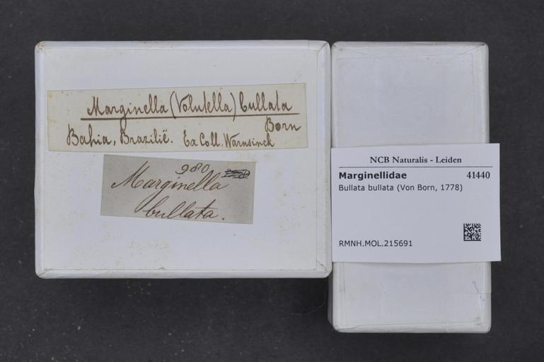| Keywords: Naturalis Biodiversity Center - RMNH.MOL.215691 1 - Bullata bullata (Von Born, 1778) - Marginellidae - Mollusc shell.jpeg artwork Dimensions artwork Document type Marginellidae Bullata Individual count Infraspecific epithet Infraspecific rank Institution Naturalis Kind of unit artwork Kind of unit specimen shell Life stage Medium artwork Nomenclatural code Source institute Rijksmuseum van Natuurlijke Historie Leiden Scale the width of the text on the species/QR-code label is 38 mm Occurrence ID page Neogastropoda Other fields Other versions artwork Permission license Naturalis donation CC-0 Mollusca Publication location Scientific name Bullata bullata Von Born 1778 Scientific name authorship Von Born 1778 Source url http //bioportal naturalis nl Specific epithet bullata State or province Subject keywords artwork Subject keywords publication Title artwork Title publication Type status Uploaded with GWToolset Naturalis_Biodiversity_Center_-_RMNH MOL 215691_1_-_Bullata_bullata_ Von_Born _1778 _-_Marginellidae_-_Mollusc_shell http //medialib naturalis nl/file/id/RMNH MOL 215691_1/format/large Media donated by Naturalis Biodiversity Center Molluscs at Naturalis from the Rijksmuseum van Natuurlijke Historie Bullata bullata Bullata |